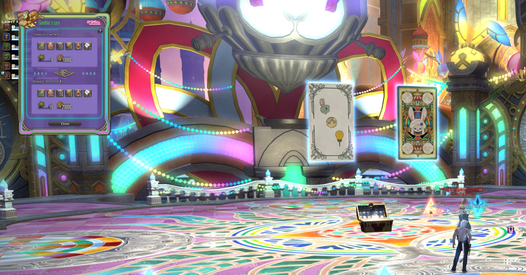 When you open a chest in a Forking Dungeon, there is a chance that Gambler’s Lure will pop. This is a game of high/low. If you think the next card will be higher, select “high” otherwise select “low.”